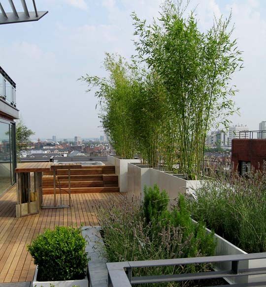 If you have a large rooftop, you can plant tall trees and shrubs to utilize the space to the fullest. Growing bamboo and grasses is a good combination if you want to make it low maintenance.